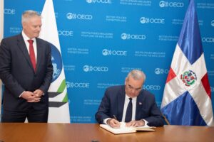 RDalDescubierto- París, Francia. -* En presencia del presidente Luis Abinader, el canciller Roberto Álvarez y el secretario general de la Organización para la Cooperación y el Desarrollo Económico (OCDE), Mathias Cormann, firmaron un Memorando de Entendimiento con el que las partes formalizan su acercamiento y buscan fomentar la cooperación, impulsar el intercambio de buenas prácticas, así como apoyar el fortalecimiento de políticas públicas conforme a estándares internacionales.